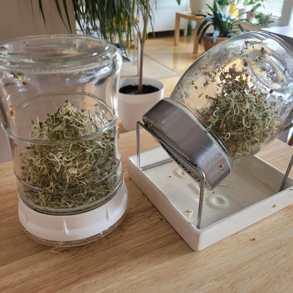 Semena niso primerna za kaljenje v kozarcu (se ne spirajo z vodo). Svetujemo kaljenje v naši posodici za vzgojo mikrozelenja in kalčkov na perlan podlogi (1 jedilna žlica, pršenje semen s pršilko 2-3 x na dan).